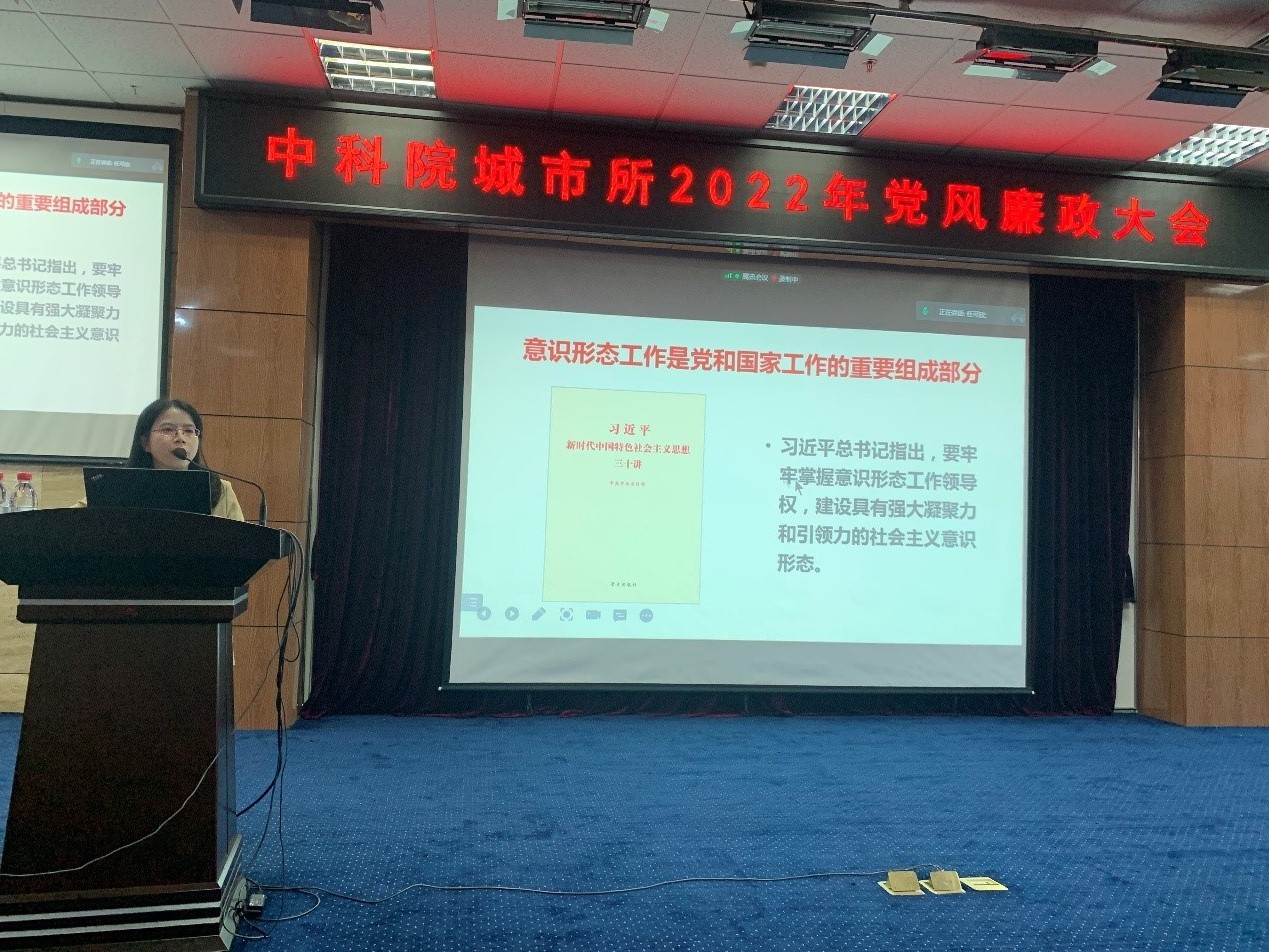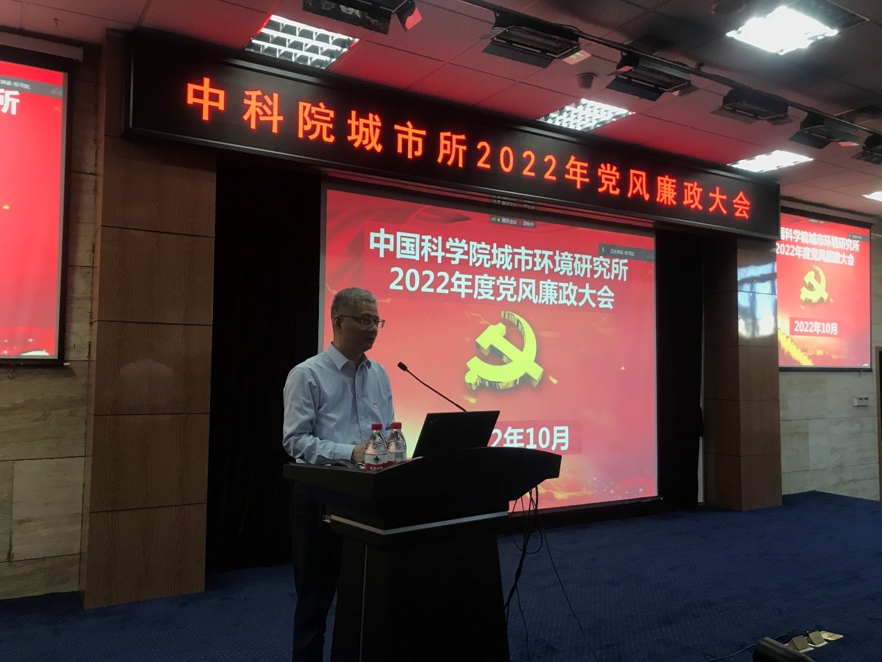 10月26日,城市所党委组织召开2022年度党风廉政大会,全所职工和研究生200余人参加会议(宁波观测站线上参加),会议由党委副书记、纪委书记兰国政主持。