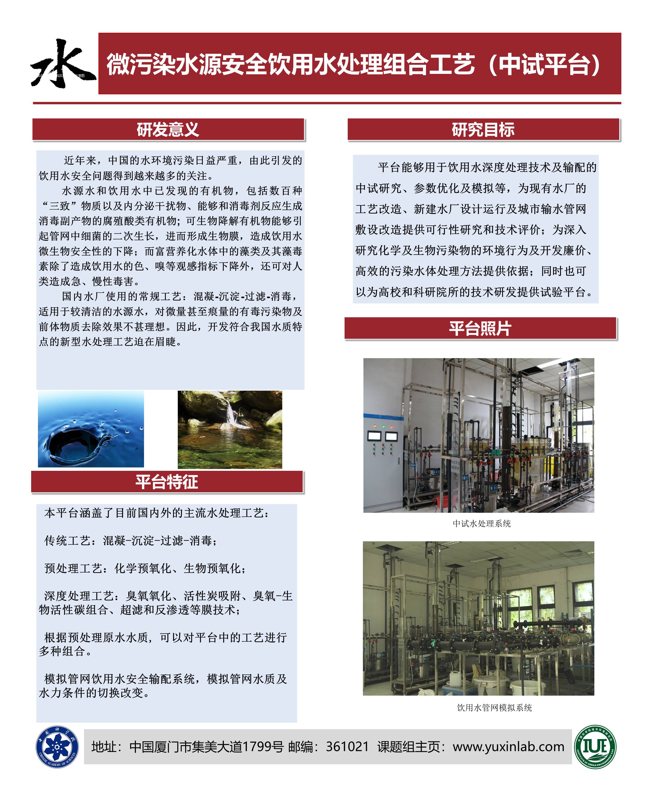 微污染水源安全饮用水处理组合工艺(中试平台)
