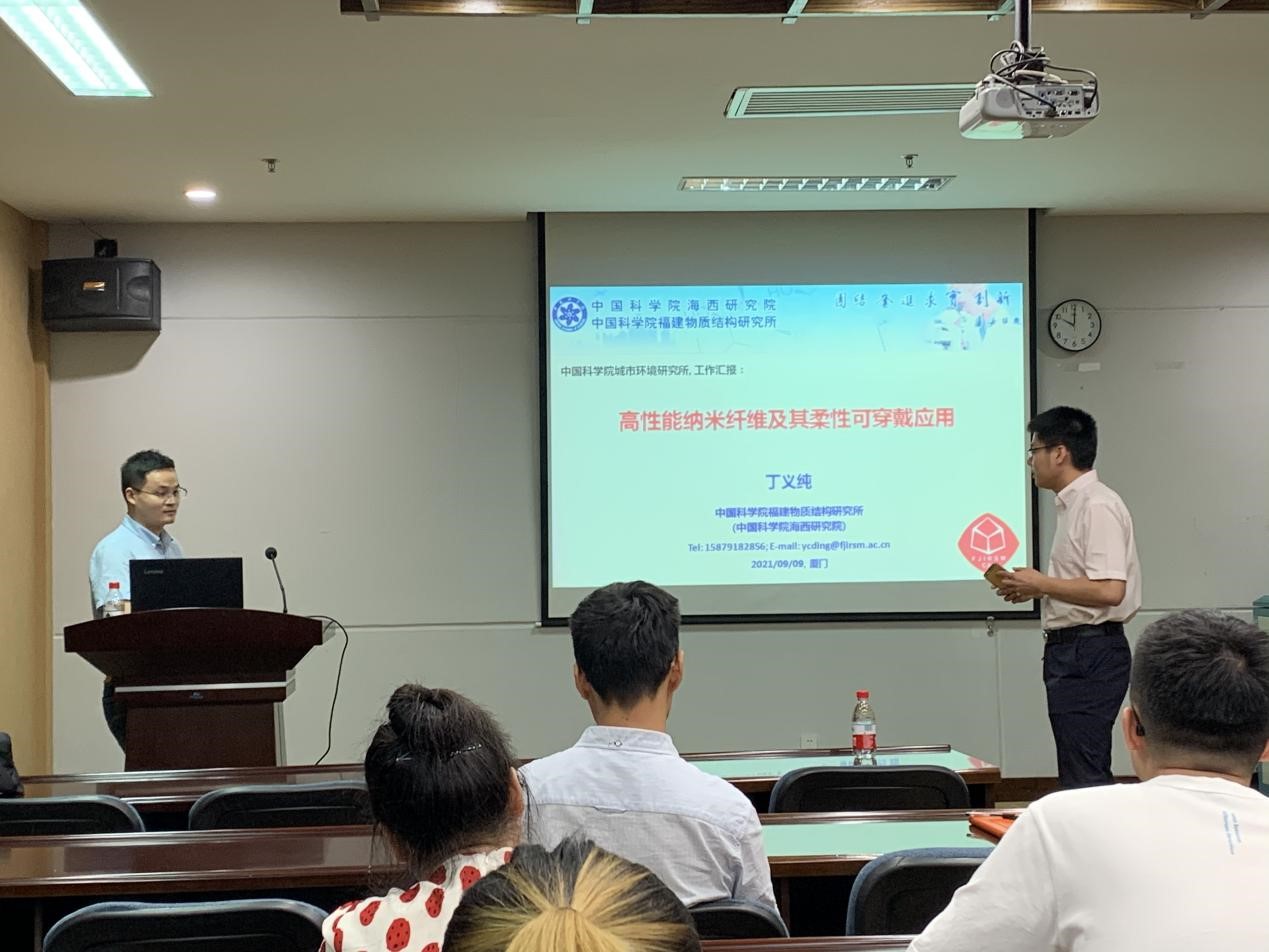 9月9日,应中国科学院城市环境研究所青促会小组和郑煜铭研究组邀请,中国科学院福建物质结构研究所丁义纯副研究员访问城市环境研究所,并在综合楼207会议室作了题为“高性能纳米纤维及其柔性可穿戴应用”的学术报告。